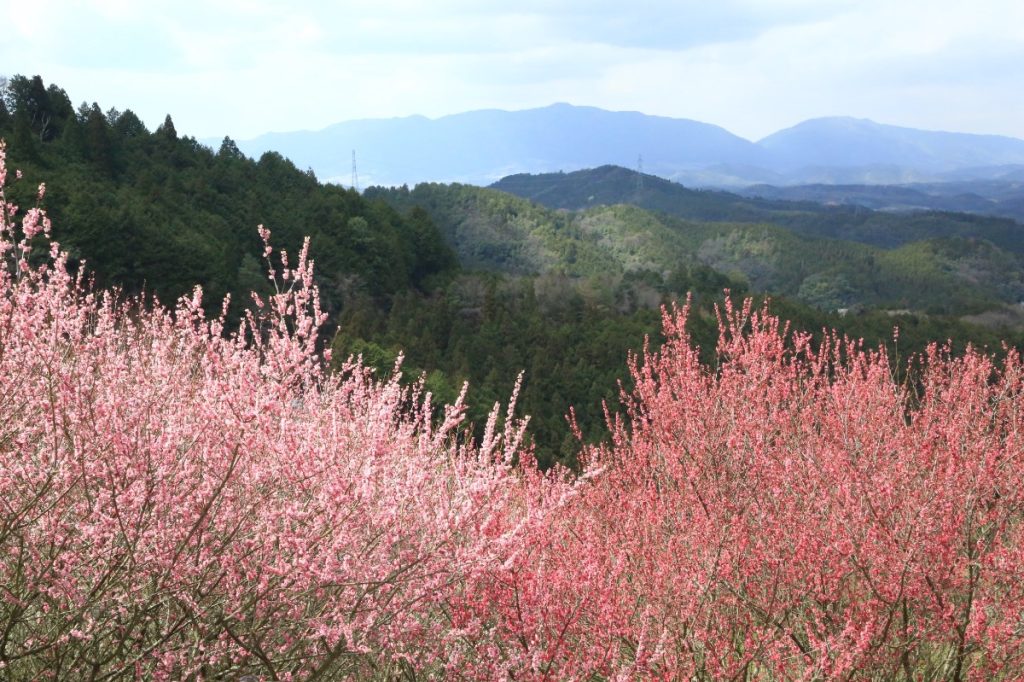 2月下旬から3月下旬にかけて梅の花がほころび、雲海さながらの絶景を作り出す。