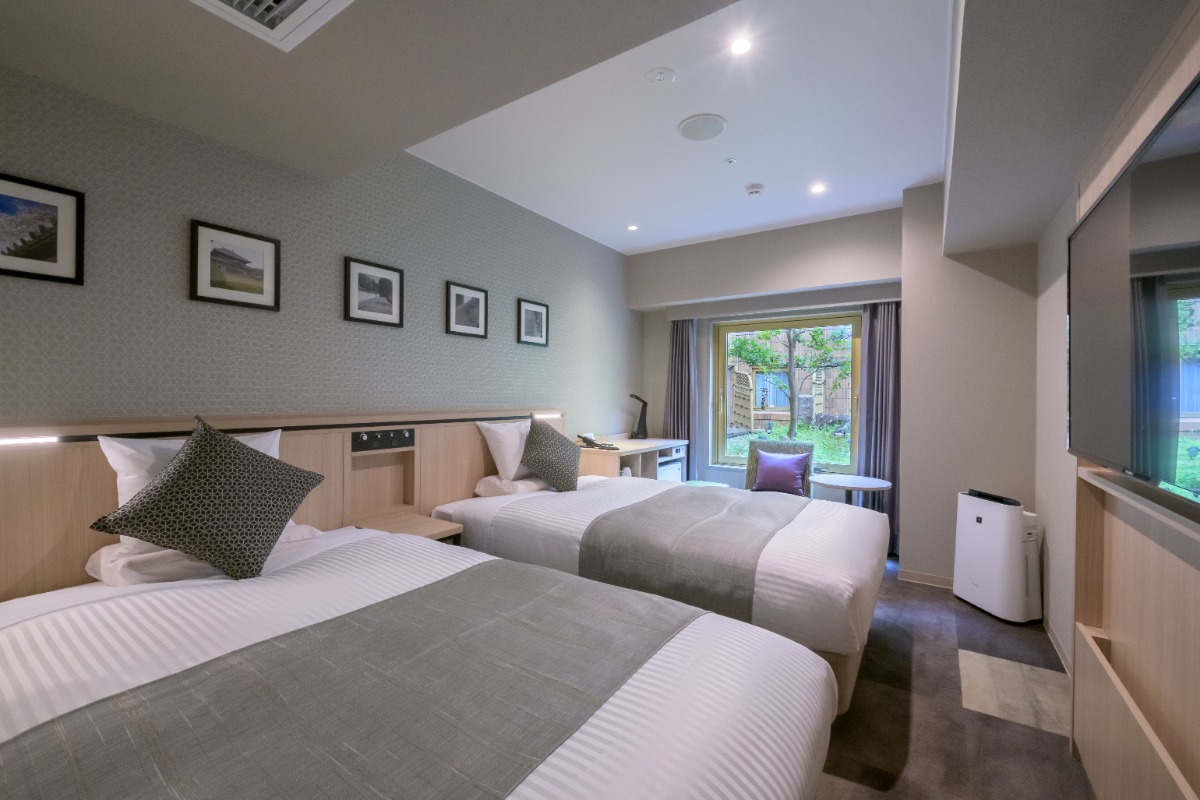 数ある客室のなかでも、おすすめの部屋は窓が中庭に面したスーペリアツイン。