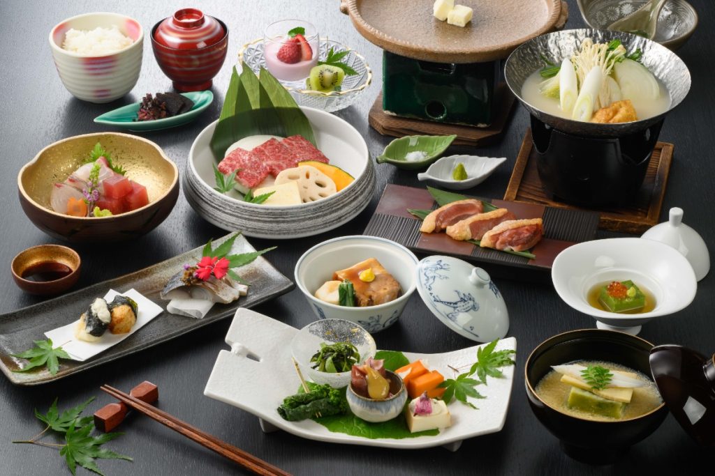 季節の食材とともに奈良の三大肉ブランドを楽しめる贅沢な和会席だ。