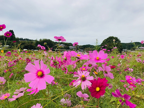 一面に広がるコスモス畑で秋風に揺れる色とりどりのコスモスは一見の価値あり!