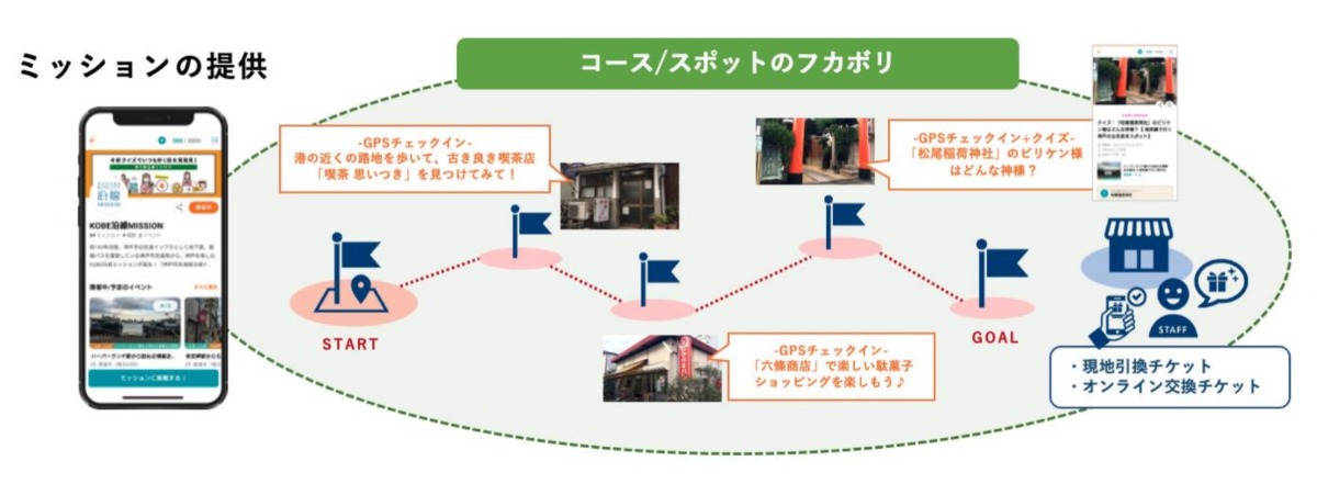 地域と人を深堀りするミッションアプリとなっており、位置情報を使ったゲーム性の高いミッションを軸に、ポイント制度やランキング機能、報酬の交換など、すべてアプリの中で完結。