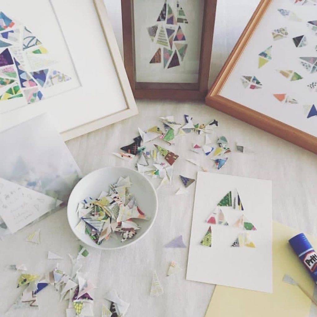 三角形のハギレを思うがままに張り付ける。