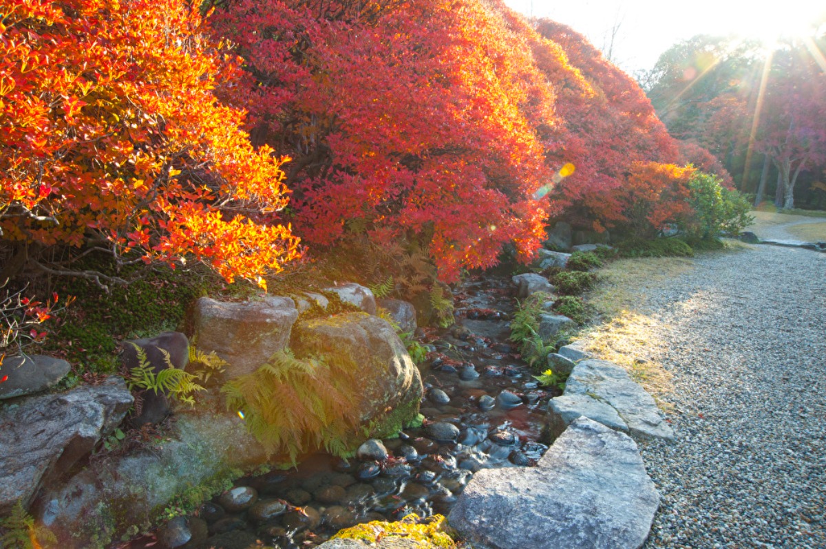 美しく色づいたドウダンツツジやイロハモミジが池に映り込む光景は見ものだ。