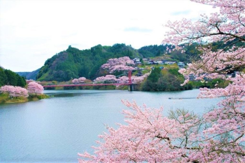 桜は月ヶ瀬湖畔沿い約4kmほどにわたって植林されたもので、特に八幡橋周辺はおすすめ鑑賞スポット。
