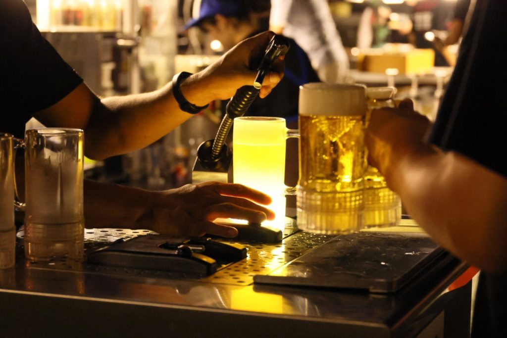 街が見渡せる開放感にあふれた屋上で楽しむビールは格別。