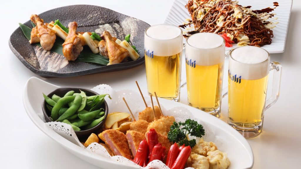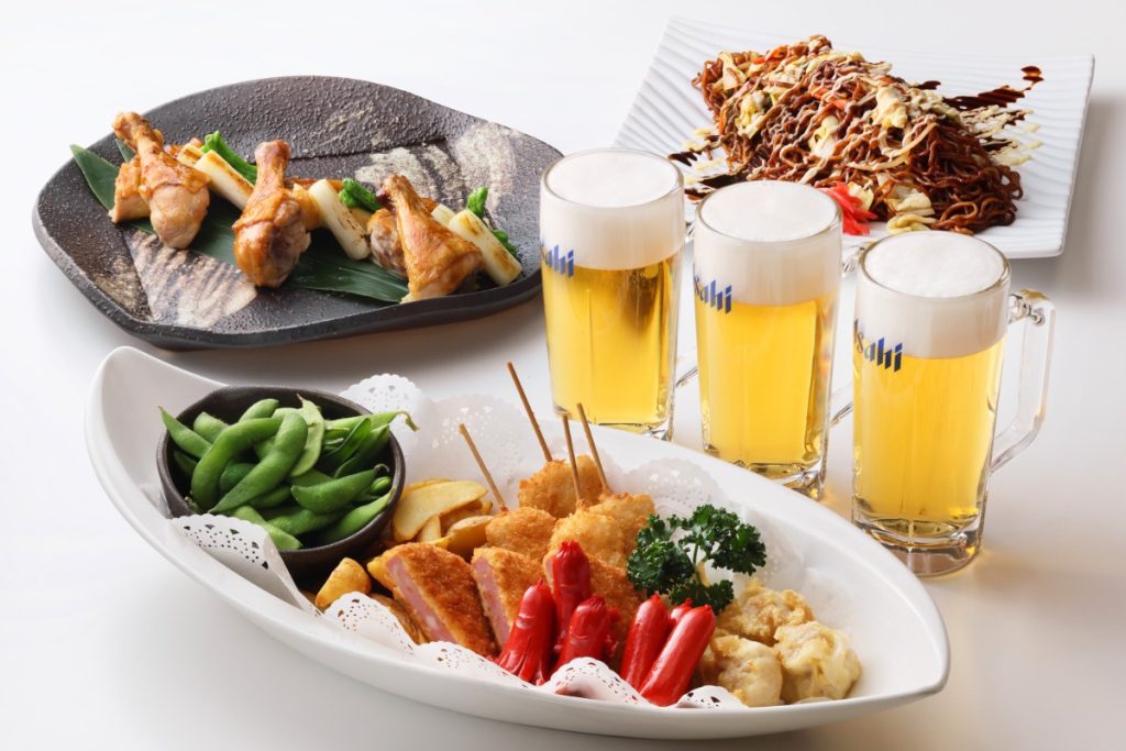 ドリンクは生ビール、ウイスキー、焼酎、酎ハイ、カクテル、ハイボール、ソフトドリンクが飲み放題。