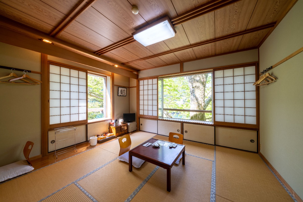 客室はシンプルで落ち着く和室。トイレは部屋の外にある共有トイレを利用。