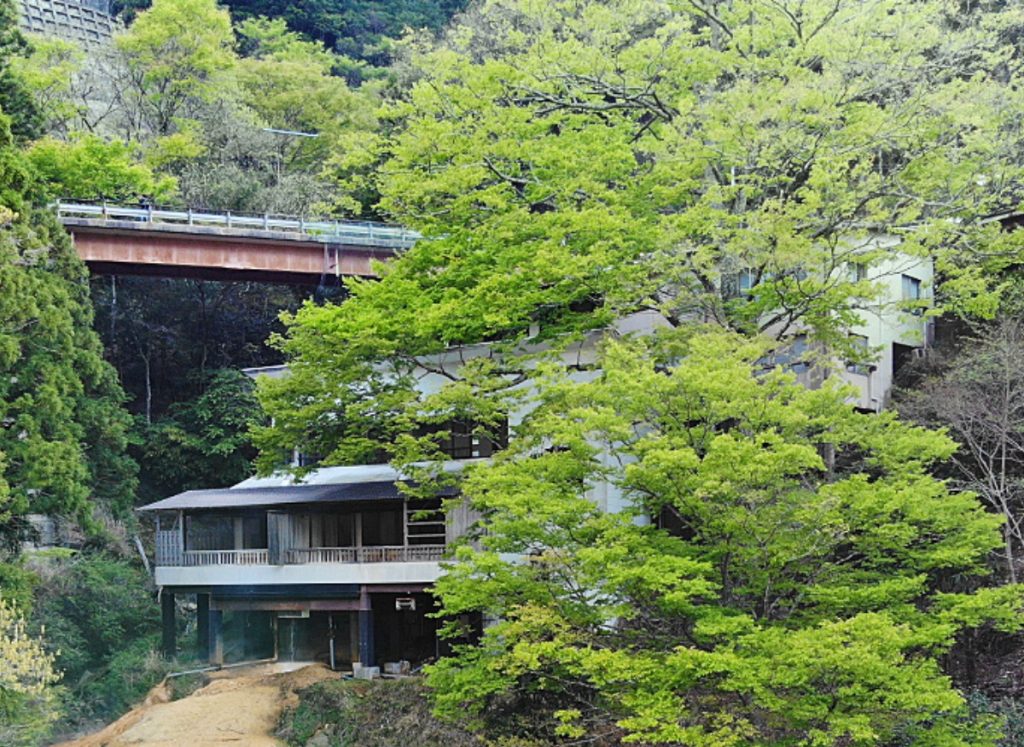 「大迫ダム」に向かって山の斜面に沿って建つ建物は、奥吉野の自然に囲まれ、「これぞ秘境の温泉宿」といった風情たっぷり。