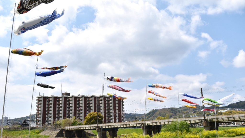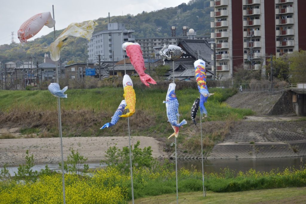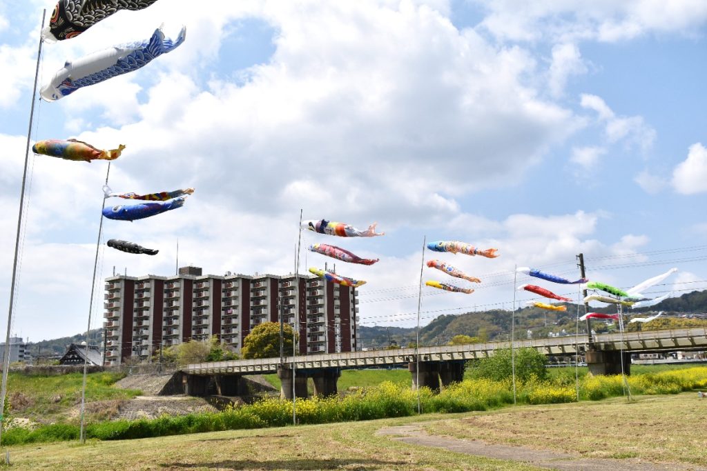 王寺町・春の風物詩が今年も登場!大和川河川敷を泳ぐ約60匹の鯉のぼり