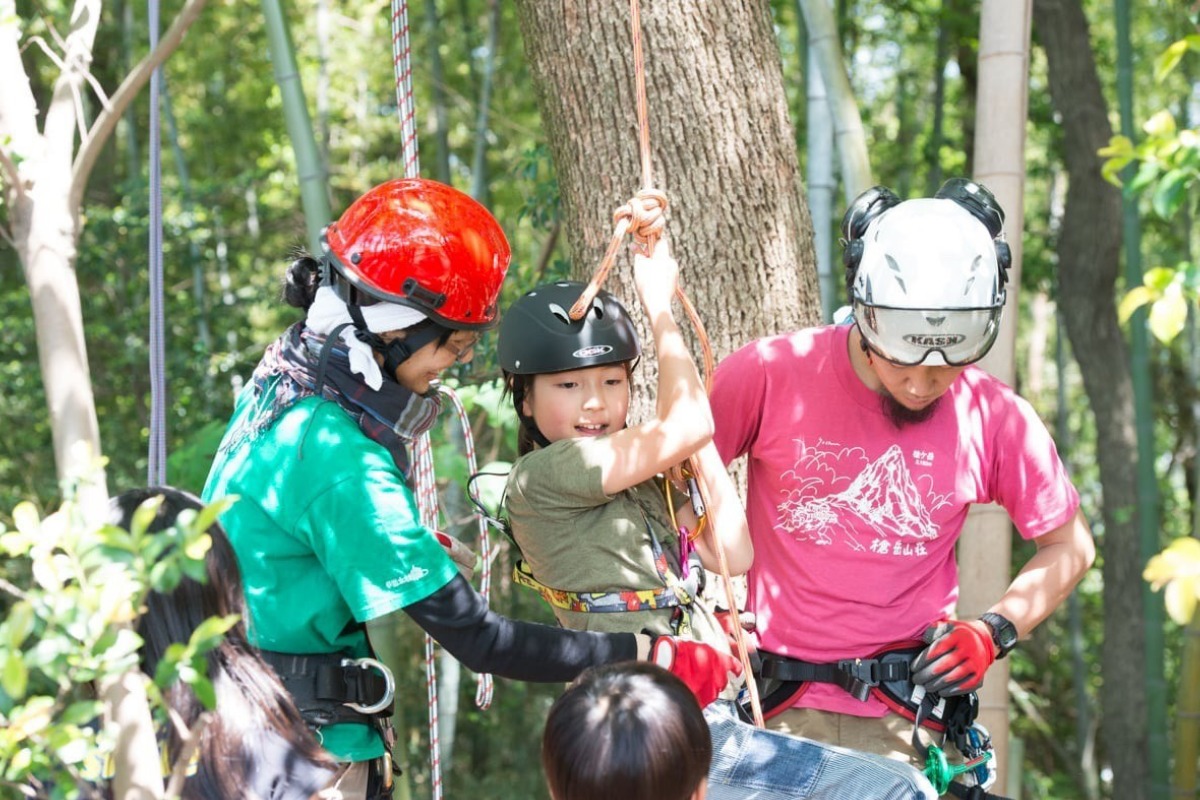 森の中ではロープを使った木登り体験、ハンモック、ブランコなど森遊びを満喫できるこども向けコンテンツも充実。