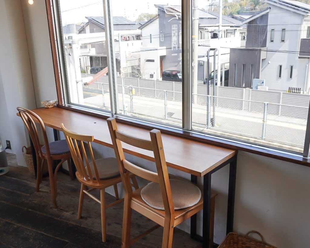 窓からはJR畠田駅や線路を走る電車が眺められます。