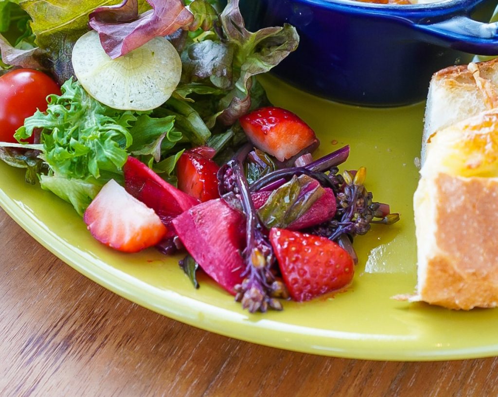 野菜は契約農家さん、自家菜園で、無農薬や減農薬で栽培されたお野菜を使用しておられるそう。