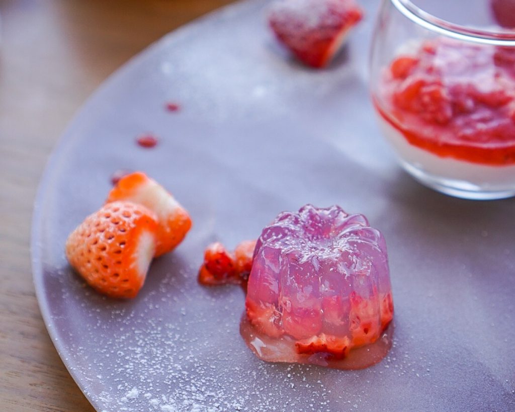 透明感のあるカヌレ型のゼリーは、いちごそのものを食べているような、しっかりとした味わいです。