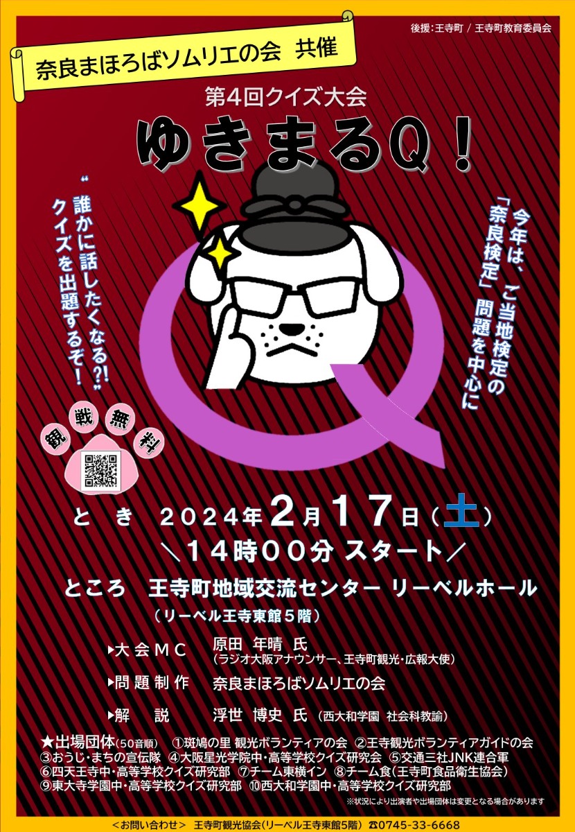 奈良県北葛城郡王寺町で「第4回 クイズ大会 ゆきまるQ!」が2024年2月17日(土)に開催される。