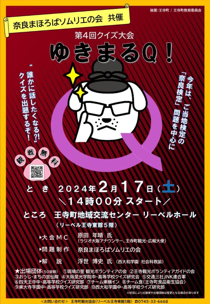 「奈良検定」にチャレンジ!奈良のご当地クイズ大会「第4回 クイズ大会 ゆきまるQ!」開催【奈良県王寺町】
