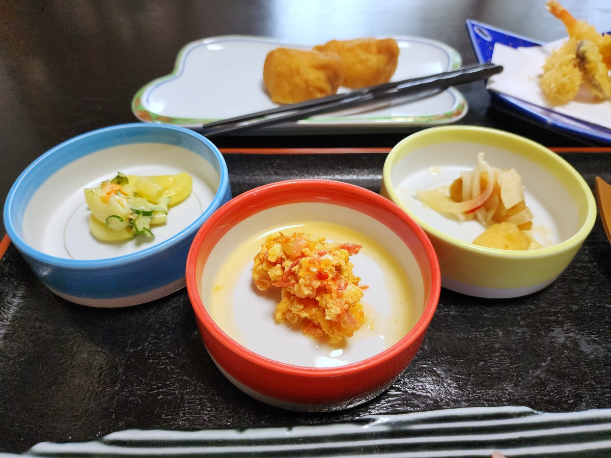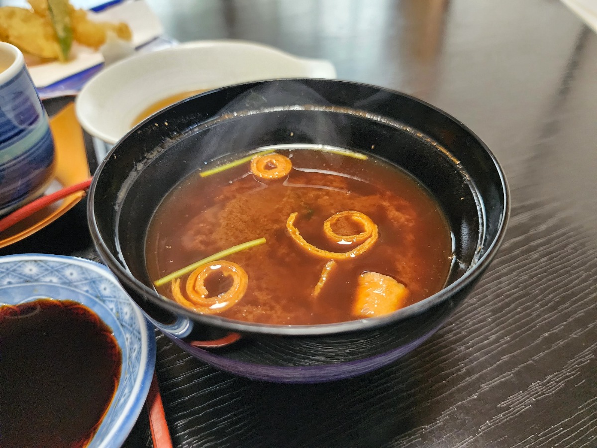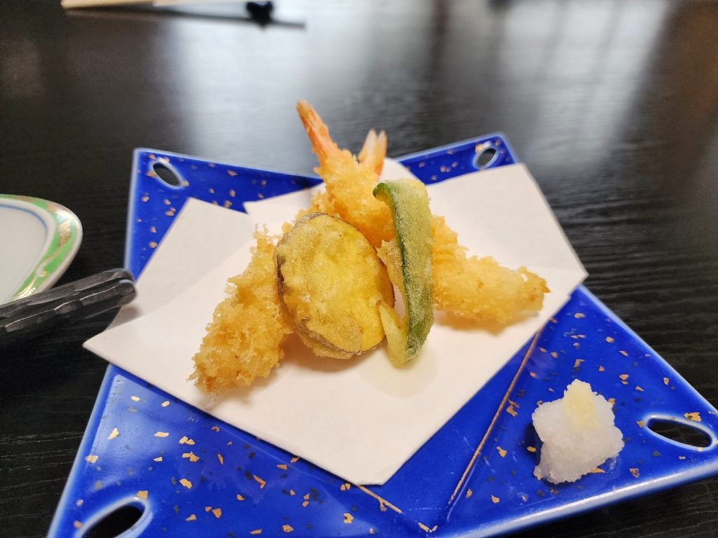 天ぷらもサクサクで熱々の茶碗蒸し、かんぱちが入った赤だし、さらにはランチタイムサービスのいなり寿司までついていてお腹いっぱい大満足のランチ!!