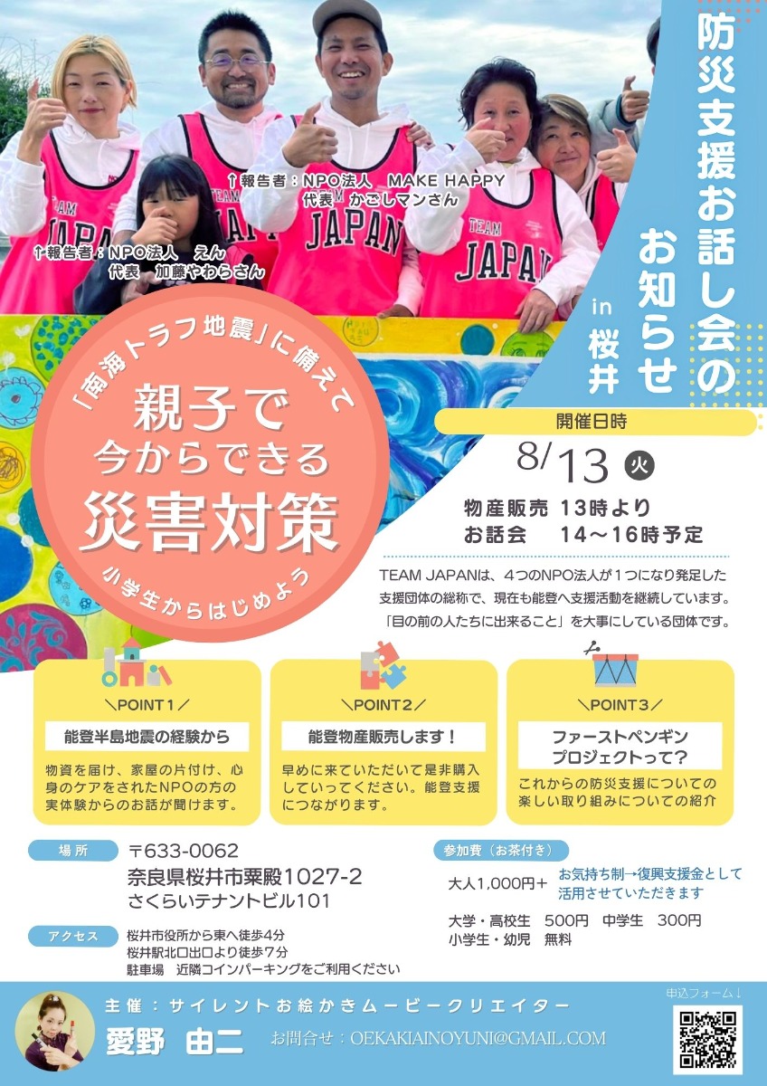 「南海トラフ地震」に備えて親子で参加しよう!桜井市で「防災支援のお話し会」開催
