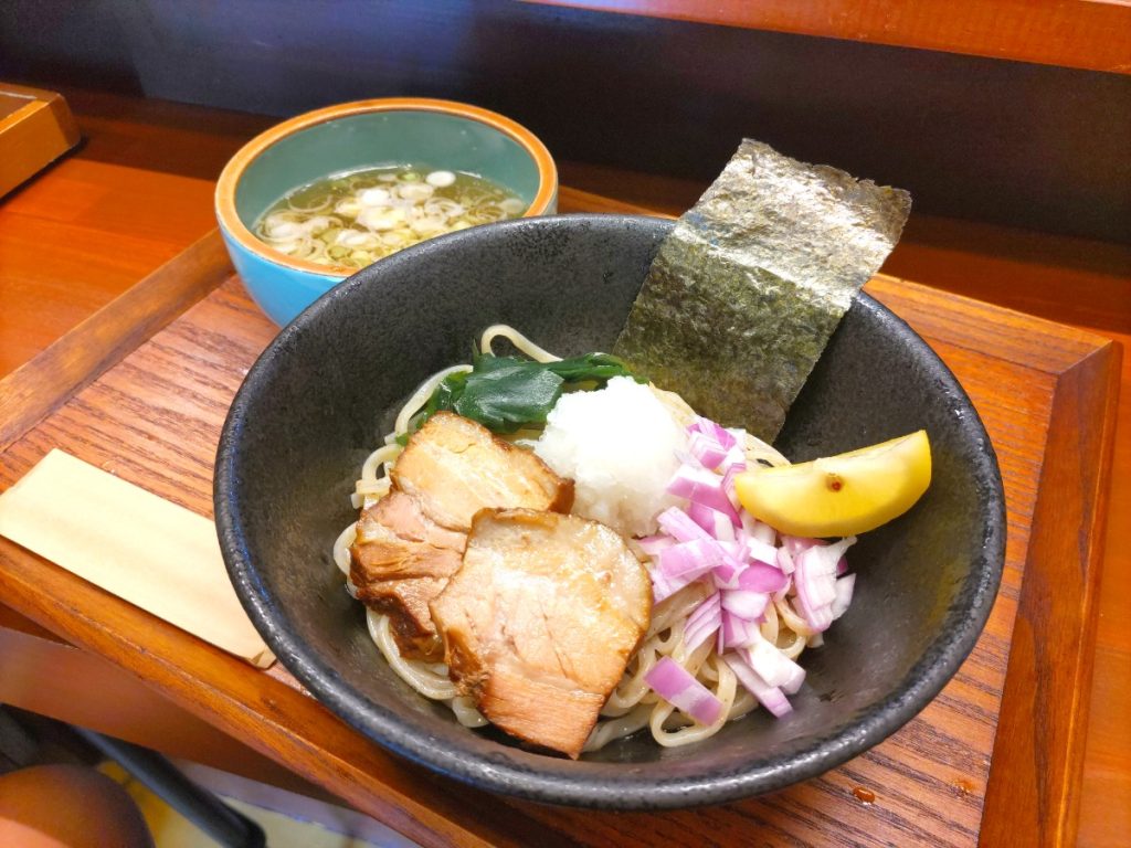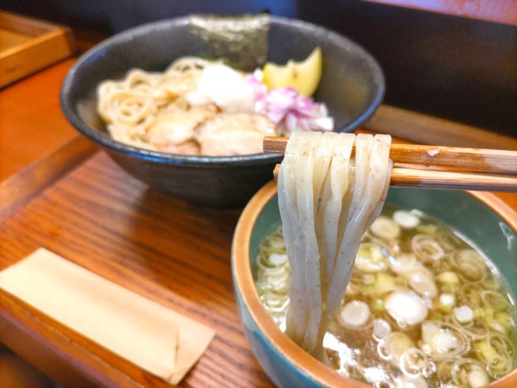 化学調味料や添加物に頼らない煮干しやサバ、鰹、椎茸や昆布から丁寧に取られた出汁に、塩ダレがビシッと決まり、清涼感もありながら食べ応えもあるつけ汁。