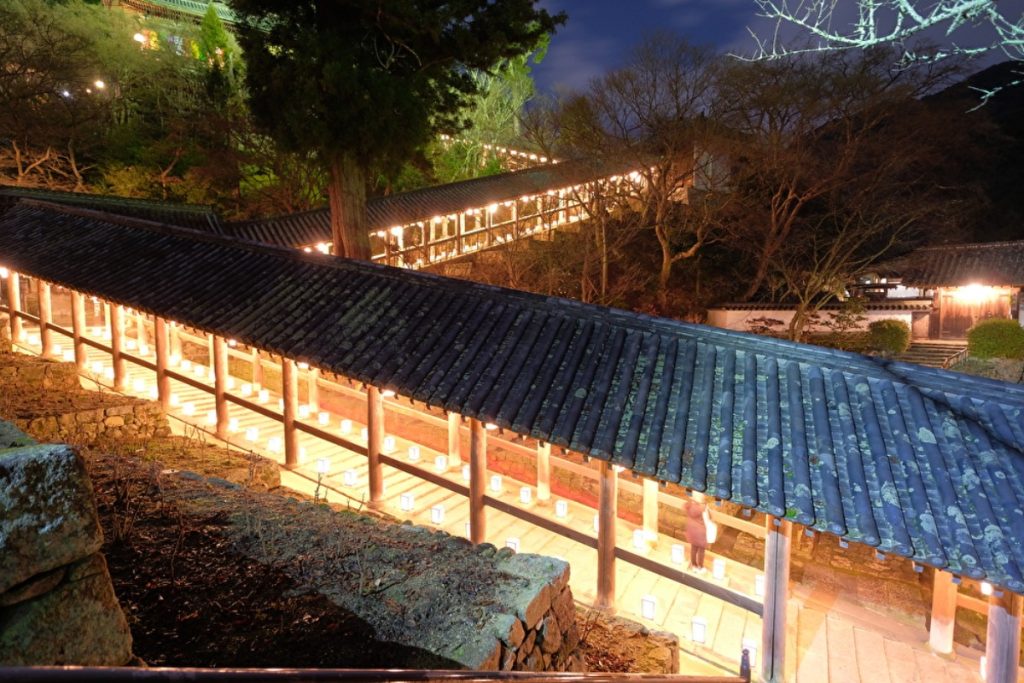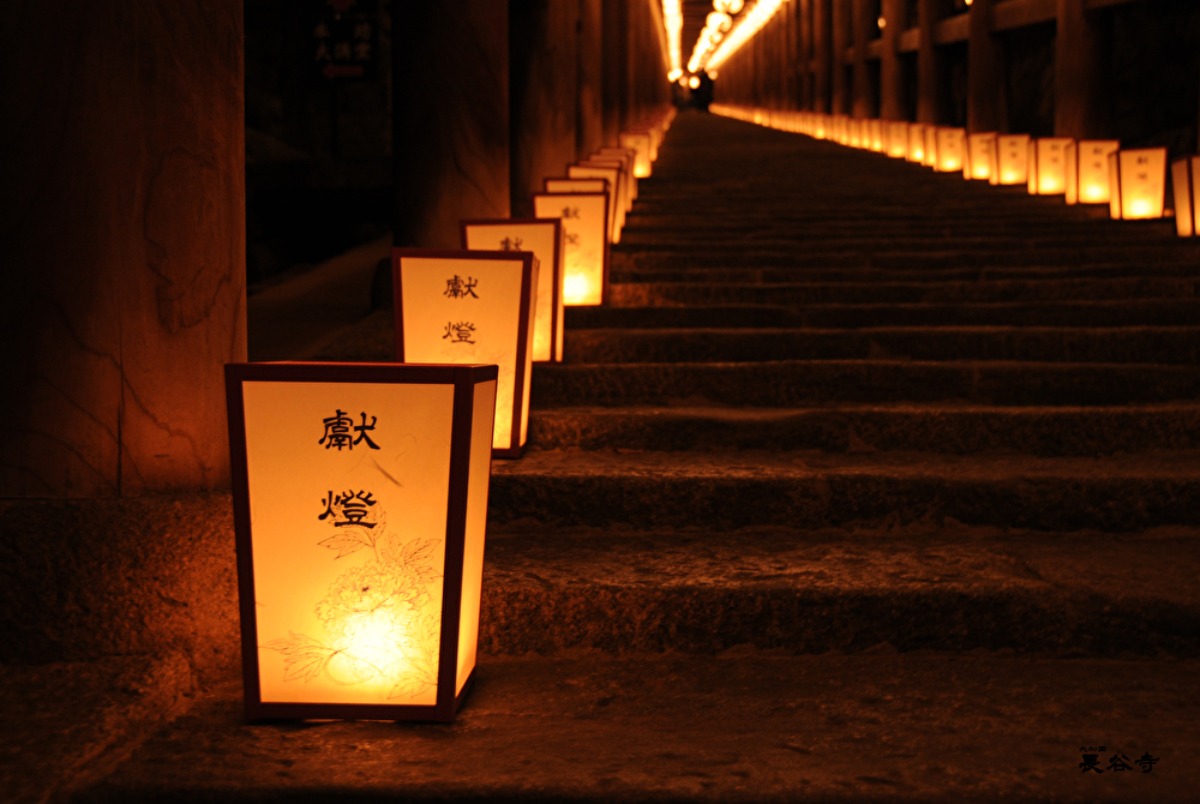 毎年、大晦日の19時から長谷寺の参道には灯火が灯り、観音様までの道中を照らし出す「観音万燈会」が行われる。