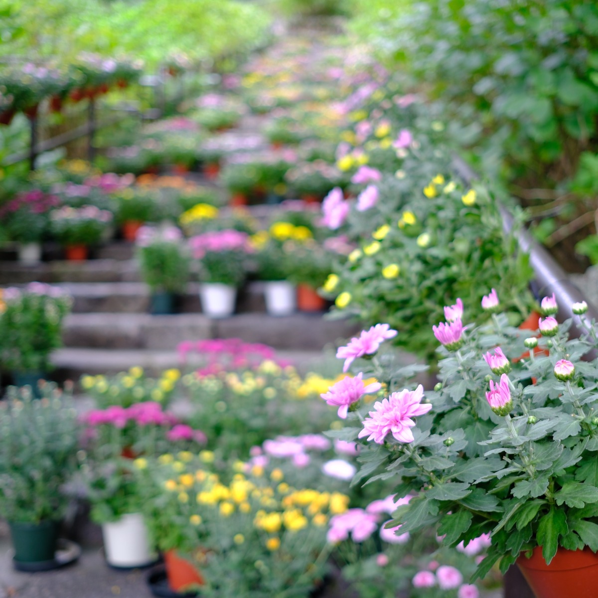 毎年、秋には特別拝観や布教師による特別法話などが催されるが、今秋はさらに、約100種類、500鉢の色とりどりの菊の鉢植えが本堂近くの参道に並べられる「菊回廊」も行われ、訪れた人々の目を楽しませている。「菊回廊」は12月10日まで。