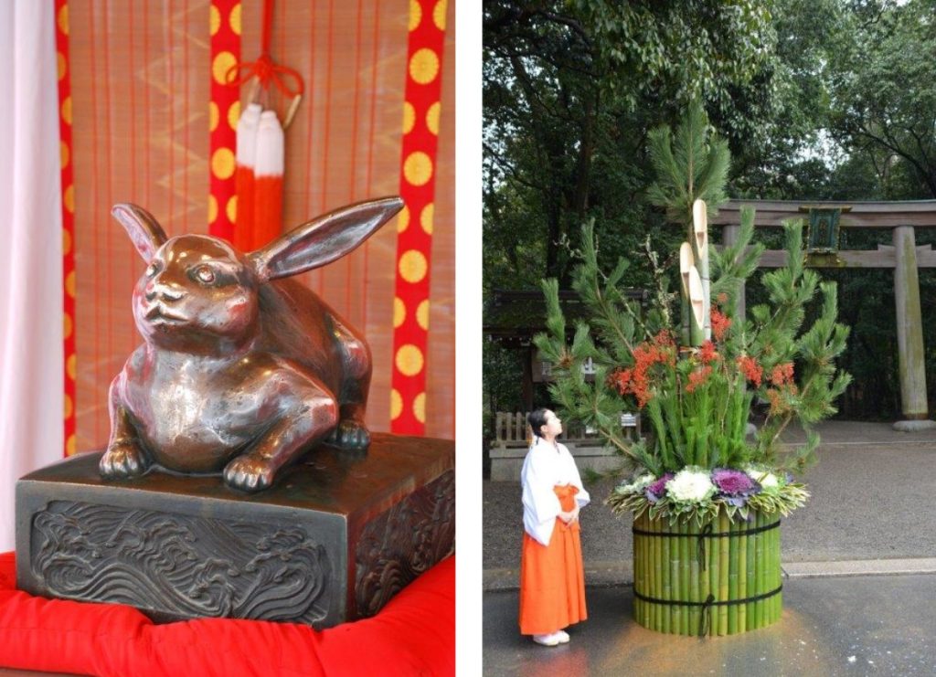 なでるとからだの痛いところを癒してくれたり願いを叶えてくれるご利益があるとされる「なでうさぎ」のお参りにも多くの人が列を作る。