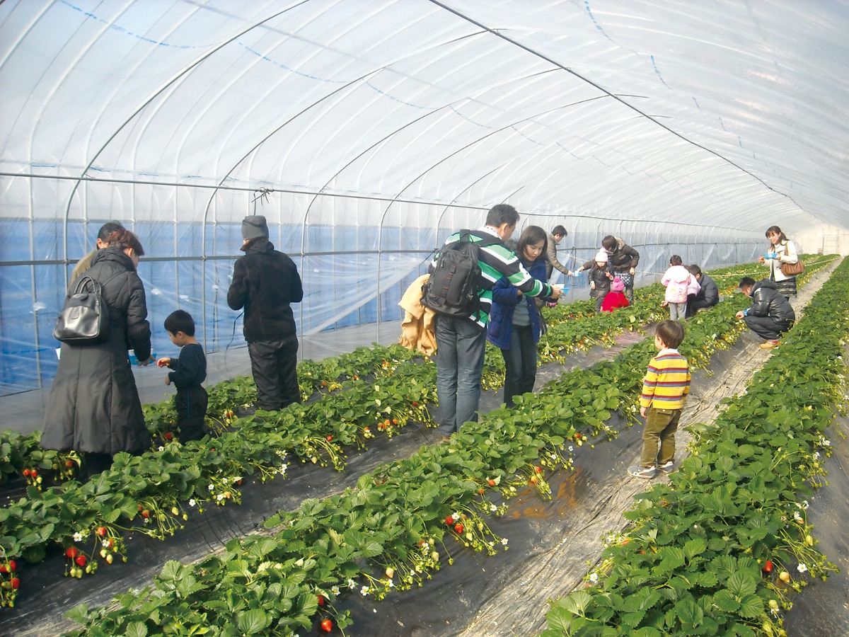 予約不要・先着順でいちご狩りができる「農業公園信貴山のどか村」。
