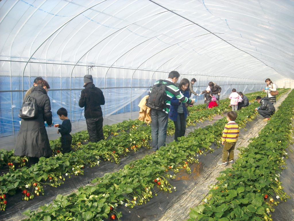 予約不要・先着順でいちご狩りができる「農業公園信貴山のどか村」。