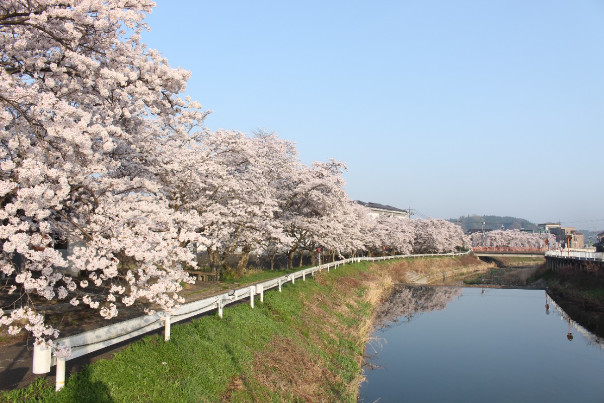 奈良県宇陀市の宇太水分神社近くの芳野川沿いの堤防に約100本のソメイヨシノの桜並木が続く「水分桜」。