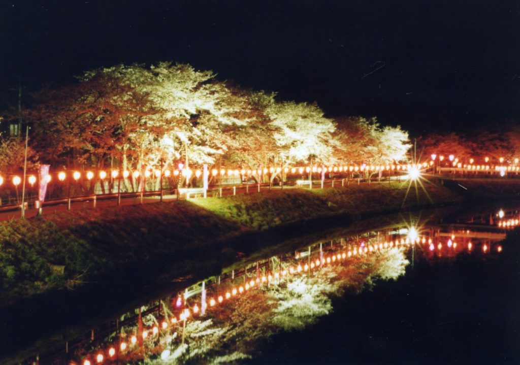 開花期間中はライトアップされ、幻想的な夜桜を楽しむこともできます。川面に映る桜の美しさにうっとり。
