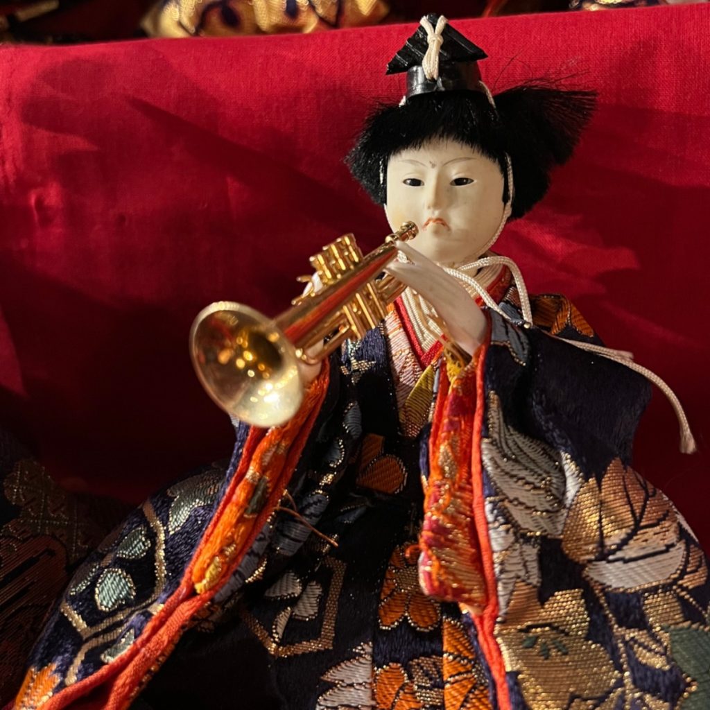 数あるおひな様の中には、2022年にプロ野球の応援パフォーマンスで大流行した「きつねダンス」を踊るおひな様や、あんぱんをおいしそうにほおばるおひな様、笛ならぬトランペットを吹くおひな様、そして超有名キャラクターを模した「スーパーヒナオ」おひな様など、ユニークなおひな様がたくさん。