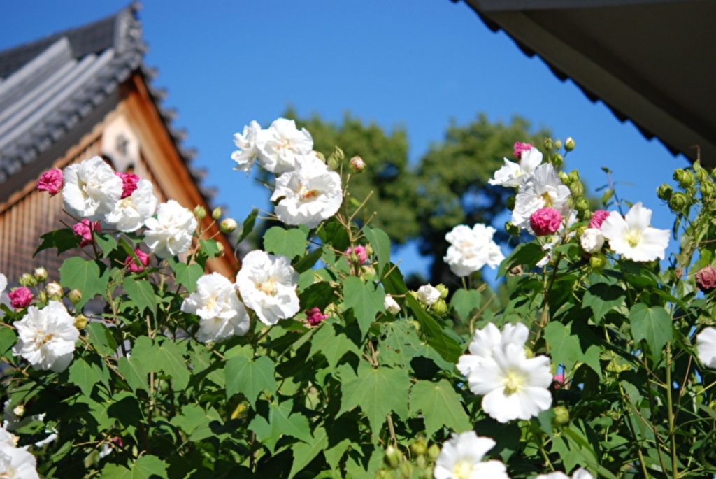 聖徳太子ゆかりの寺に咲き誇る不思議な花「酔芙蓉」【秋の花2022|橘寺|明日香村】
