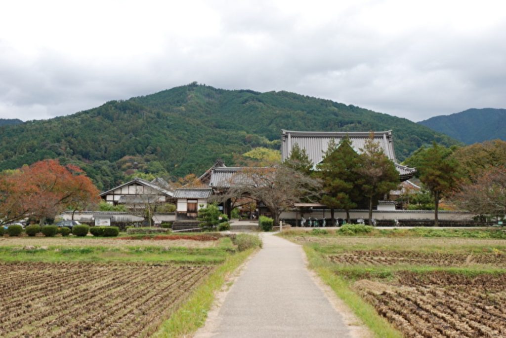 橘寺の周りにはのどかな田園風景が広がる。秋風を感じながらのんびりと散歩するのも気持ちよさそう。