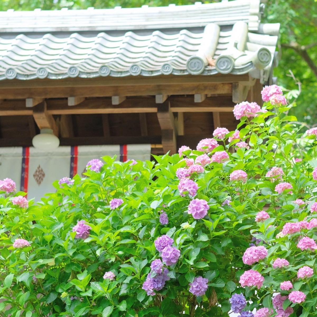 2023年5月27日(土)~7月2日(日)の期間でアジサイ園を開園中。25,000㎡の境内には回遊式の「あじさい庭園」や種類豊富なあじさいが咲きそろう「見本園」もあり、見ごたえじゅうぶんです。