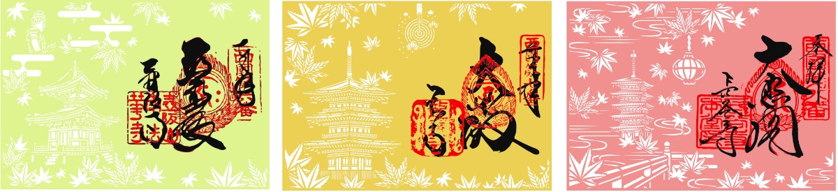 期間中は各寺特製の「もみじ回廊」の切絵朱印の授与があり、3ヶ寺の切絵朱印を納める特製台紙が販売される。特製の台紙に切絵を貼ると、宝塔が朱に染まり、紅葉が鮮やかに色づく仕掛けがあるのでお楽しみに!