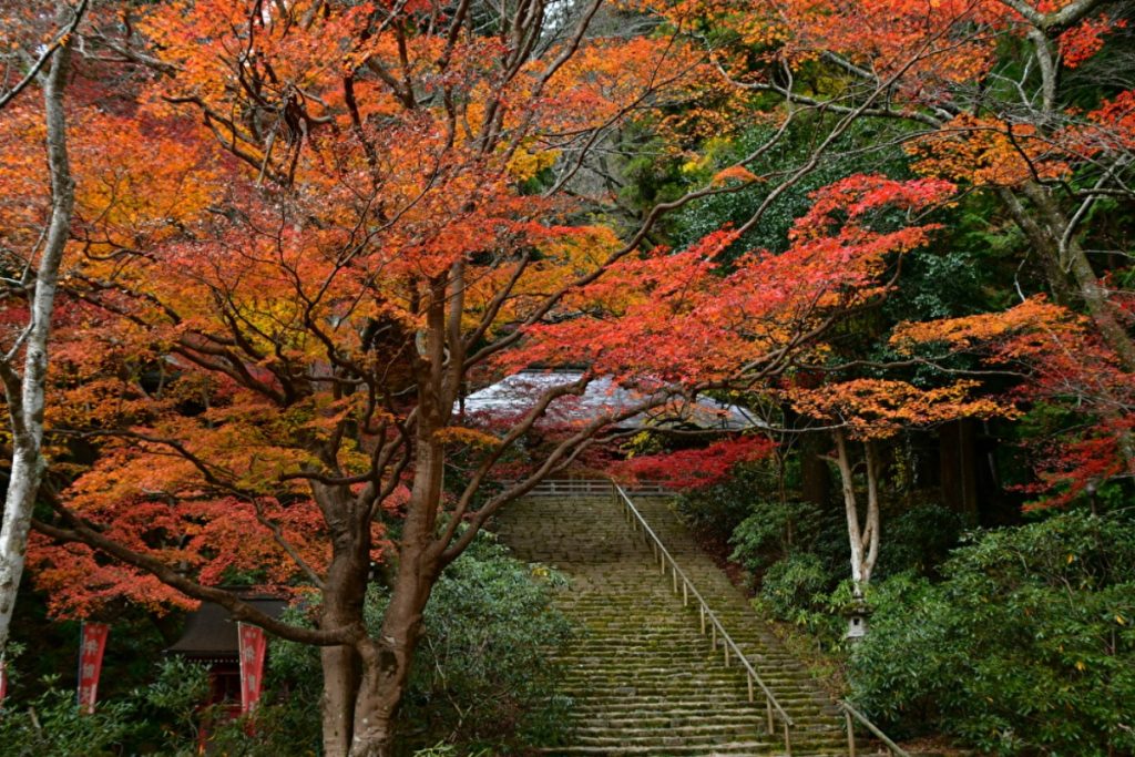 特におすすめのスポットは、仁王門を潜った先にある石積みの階段・鎧坂の紅葉。階段の下から見上げる紅葉の迫力と美しさは格別だ。
