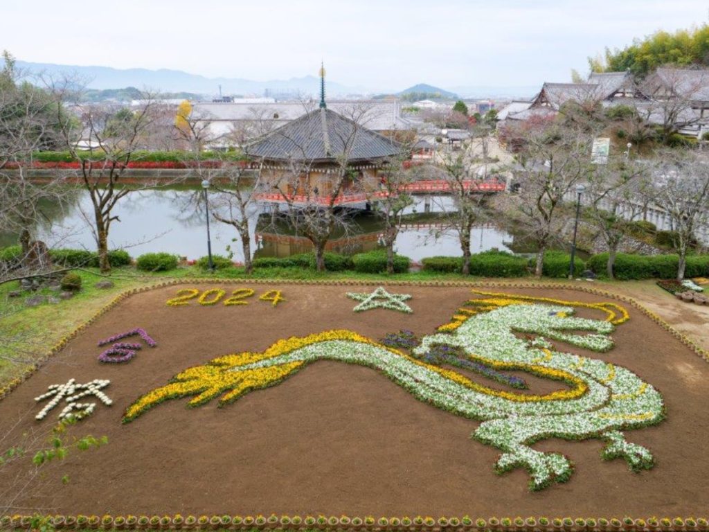 ◆【安倍文殊院|桜井市】恒例のジャンボ干支花絵は「魔を断つ(辰)」!