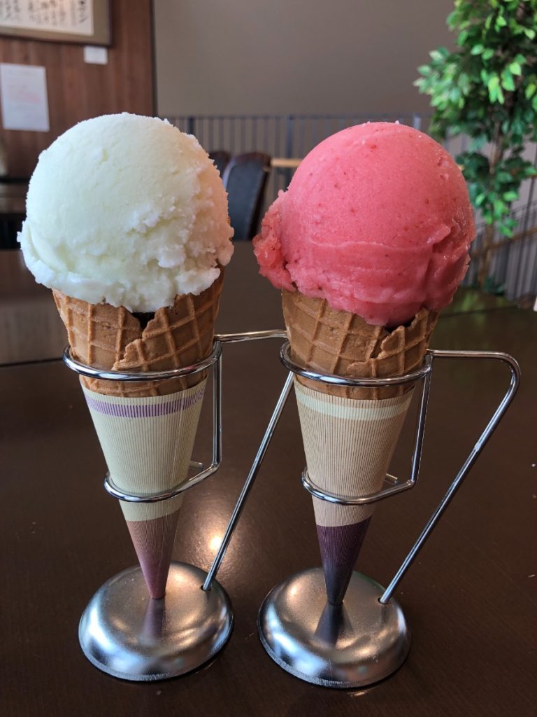 「メロン」や「ほうじ茶」をはじめ、地元の農家さんのいちごを使用した「古都華ジェラート」が大人気!!