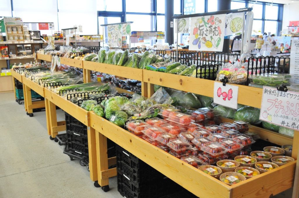 毎日地元の新鮮野菜が並び、おみやげ売り場も充実。