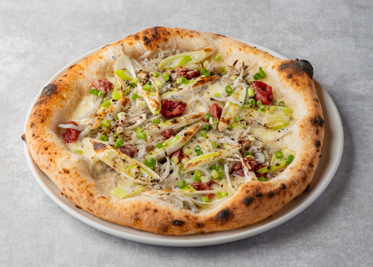日本唯一の烏梅製造元「梅古庵」の職人が仕上げた無添加梅干しと、明日香村の掘りたて新生姜、さらに田原本町の老舗醤油蔵が作るもろみパウダー『大和一雫』を合わせ、ナポリ伝統のシラスピッツァを和風テイストにアレンジした逸品。