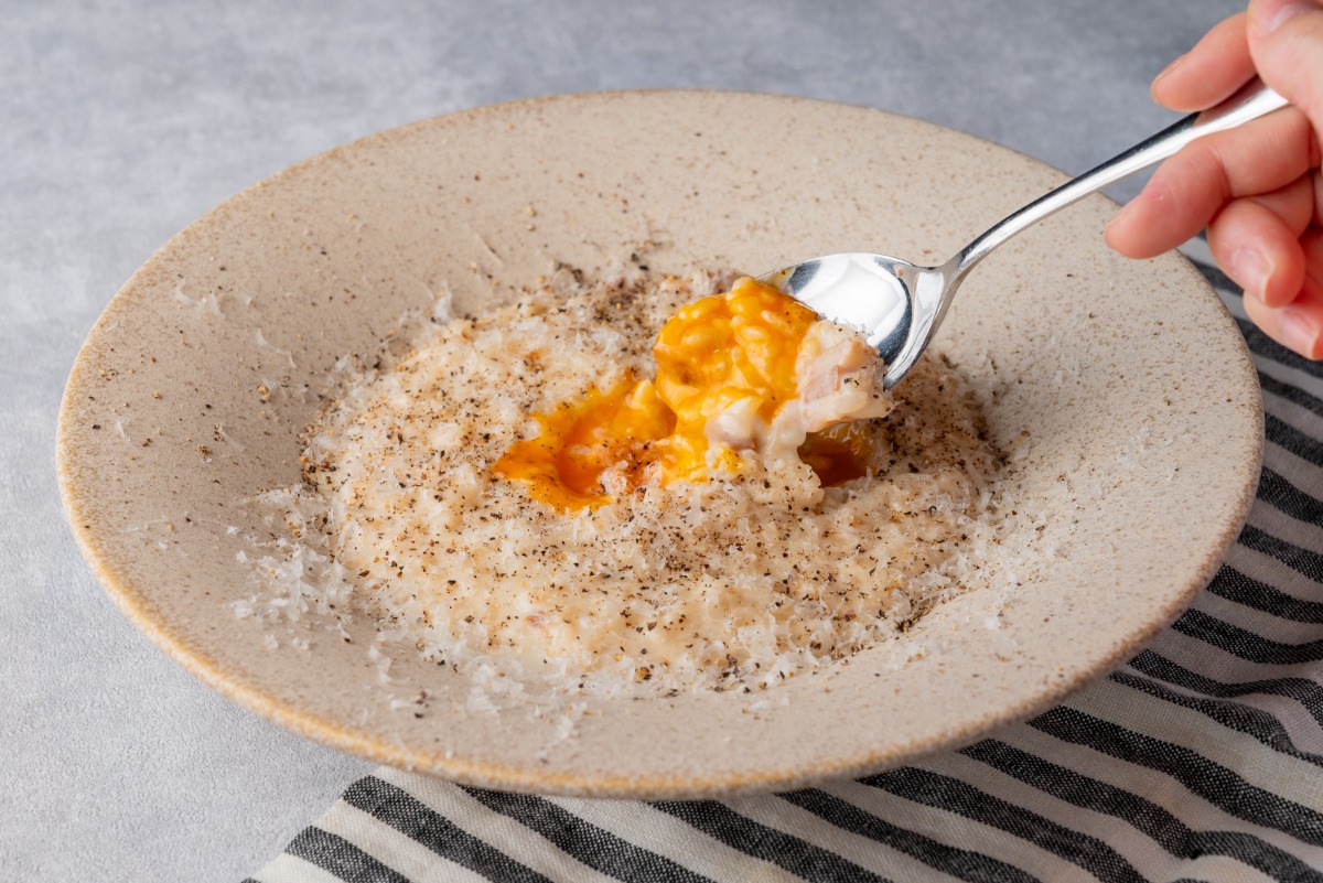 吉野MICA卵と、安萬侶さん米のカルボナーラリゾット 1,600円(税込)