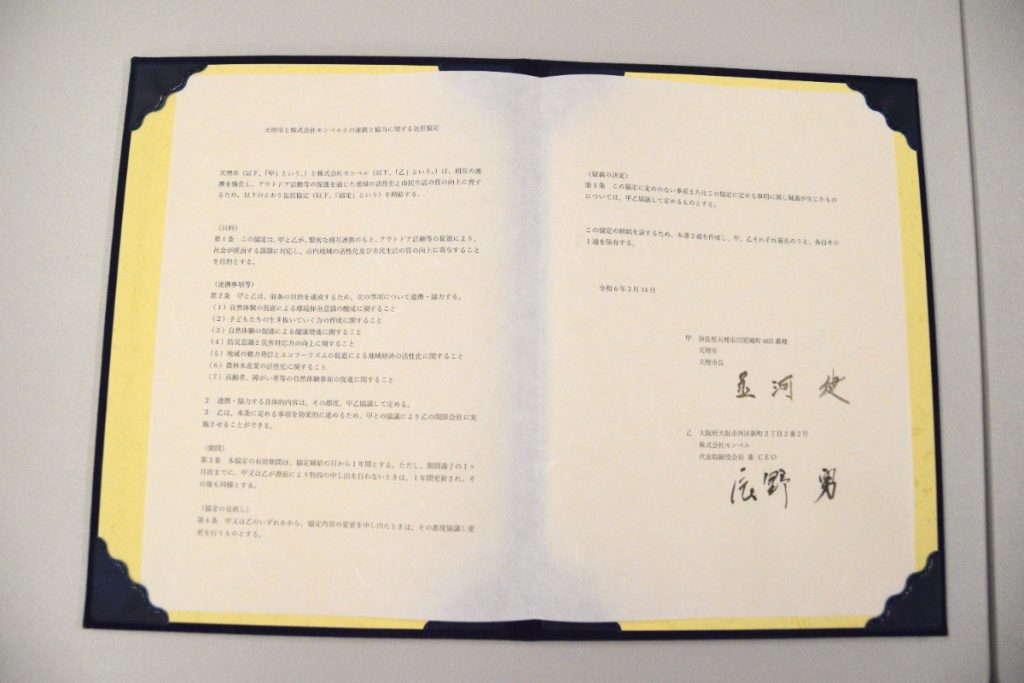 モンベルが包括連携協定を結んだのはこれで142か所目で、奈良県内では3つ目(生駒市、五條市、天理市)。