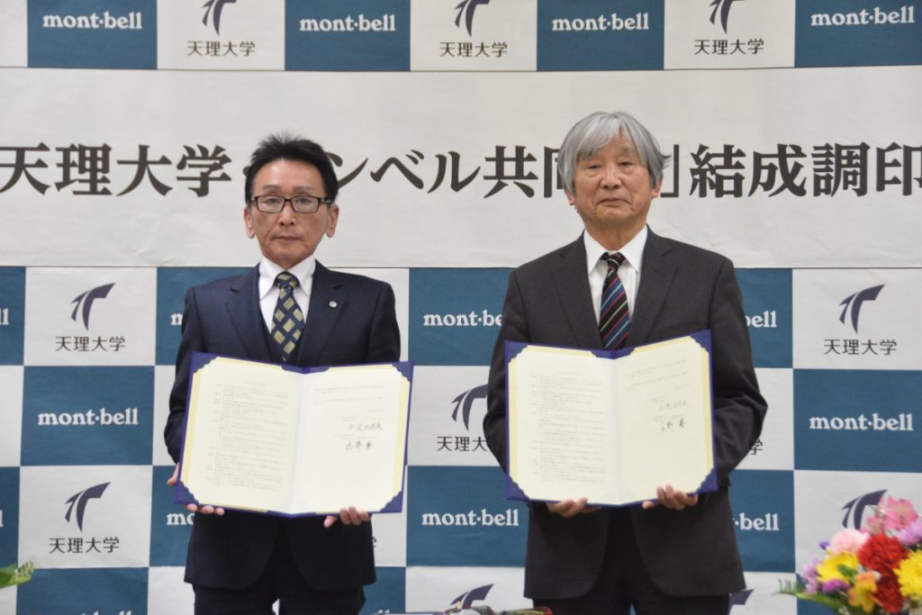 左:天理大学 永尾比奈夫学長 右:株式会社モンベル 辰野勇代表取締役会長兼CEO