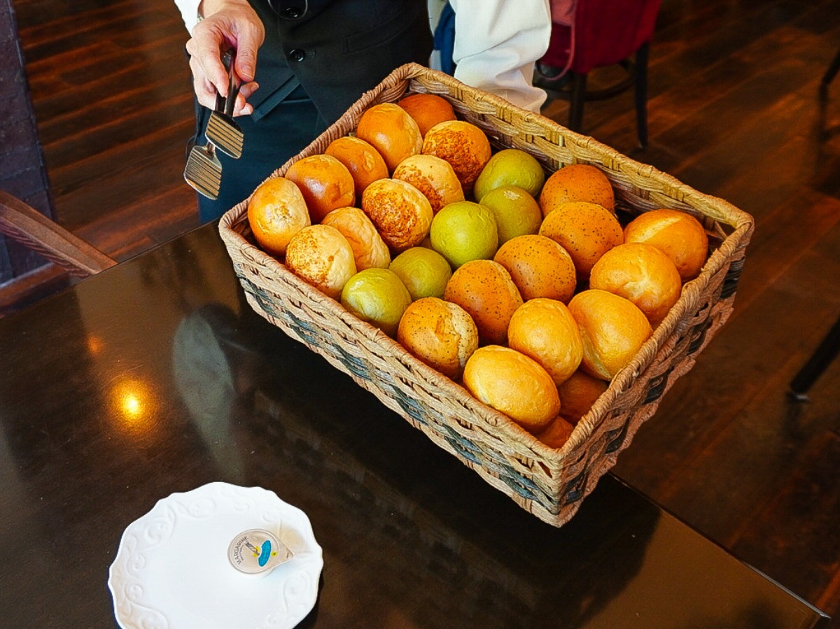 ライスかパンかを選ぶことができます。パンは焼きたてをテーブルまで運ばれて来てくださり、たくさんの種類の中から好きなパンを3つ選べます。