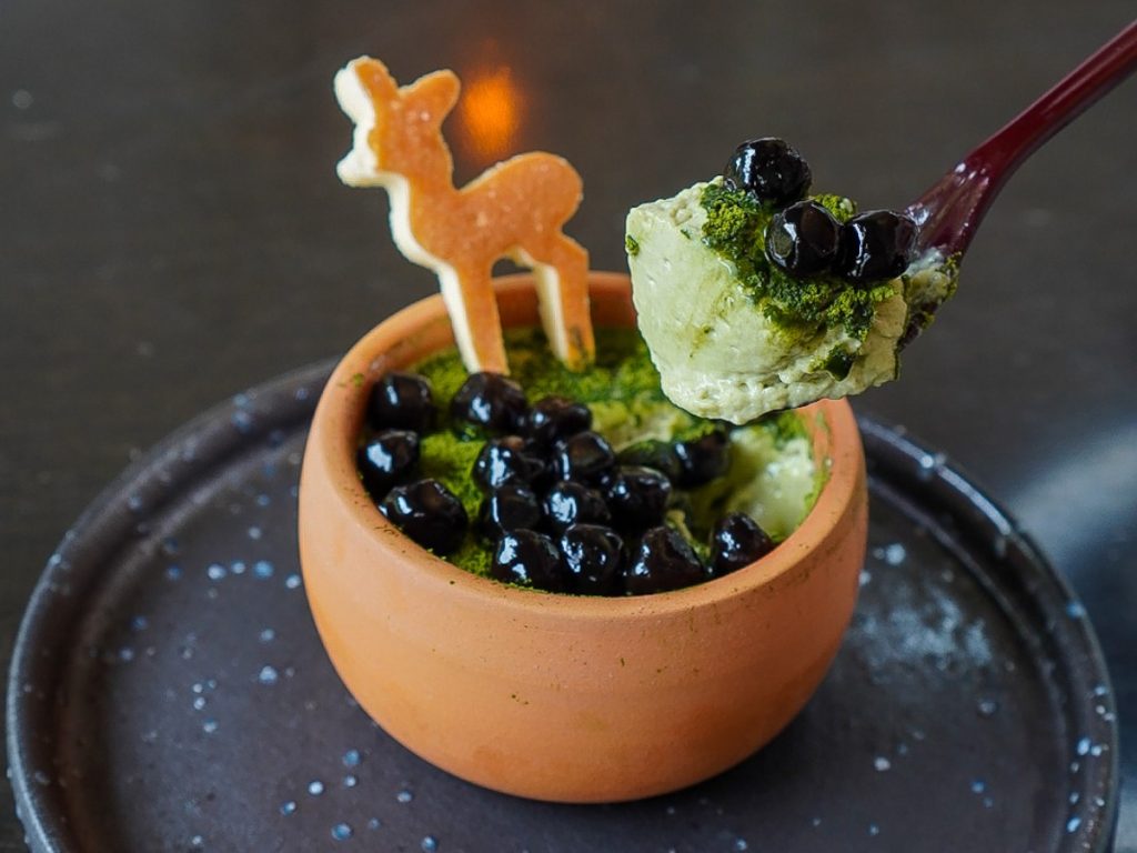 かわいい鹿をモチーフにしたクッキーのようなスポンジのような特製スイーツ、そして黒糖タピオカが…フンですね(笑)