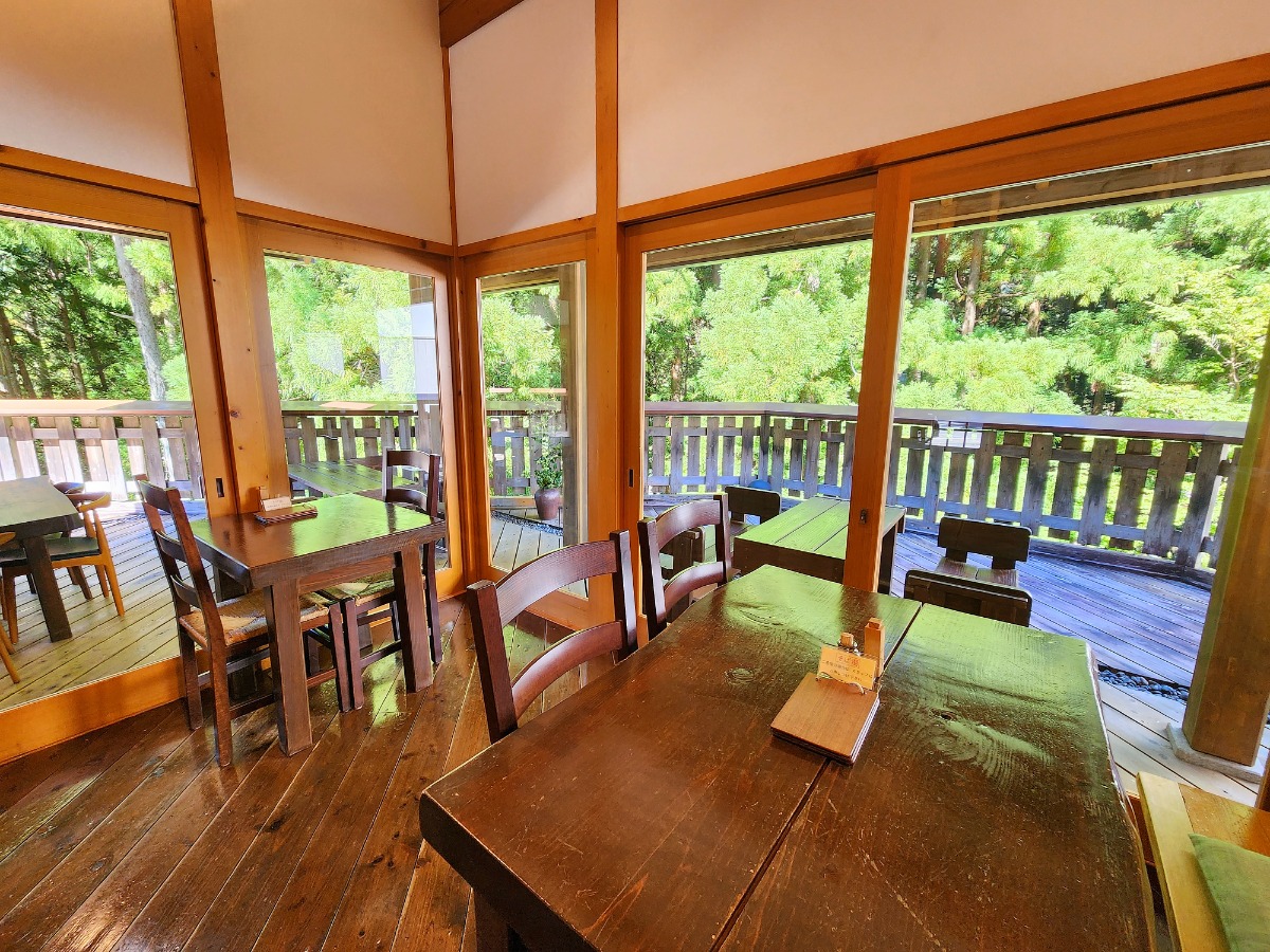 こちらは十津川の木材を使って建てられた山小屋風の大きなお店で、心地よい木の香りが漂う癒しの空間。