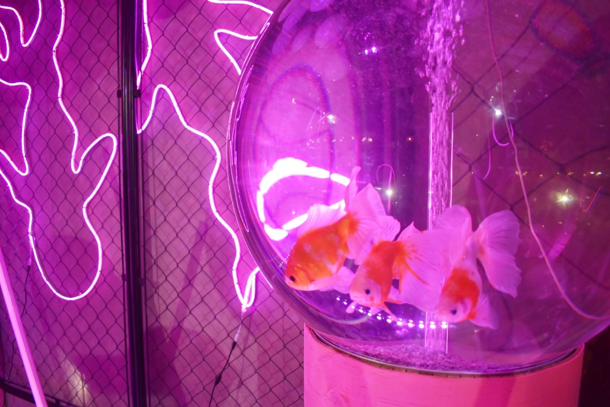 単に"金魚を展示する"という枠を超えて、アート、音楽、映像、光などの様々な演出を通して、金魚の美しさや魅力を表現。