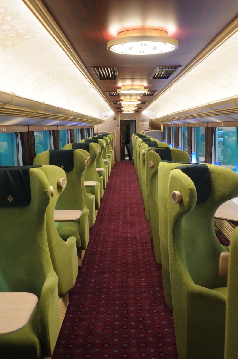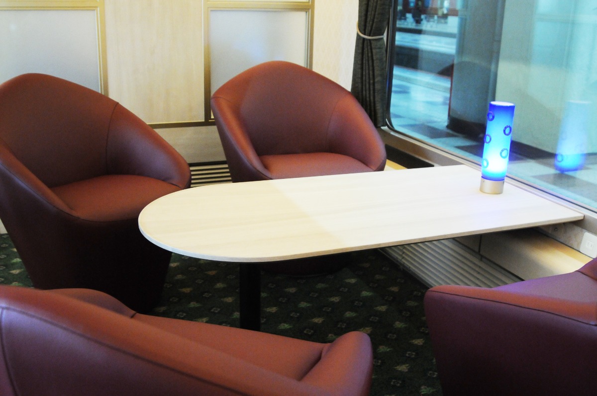 座席数は84席(全座席指定)。「ツイン席」「サロン席」があり、1人で乗るにはツイン席で「大人1人分の料金+子供料金」が必要。