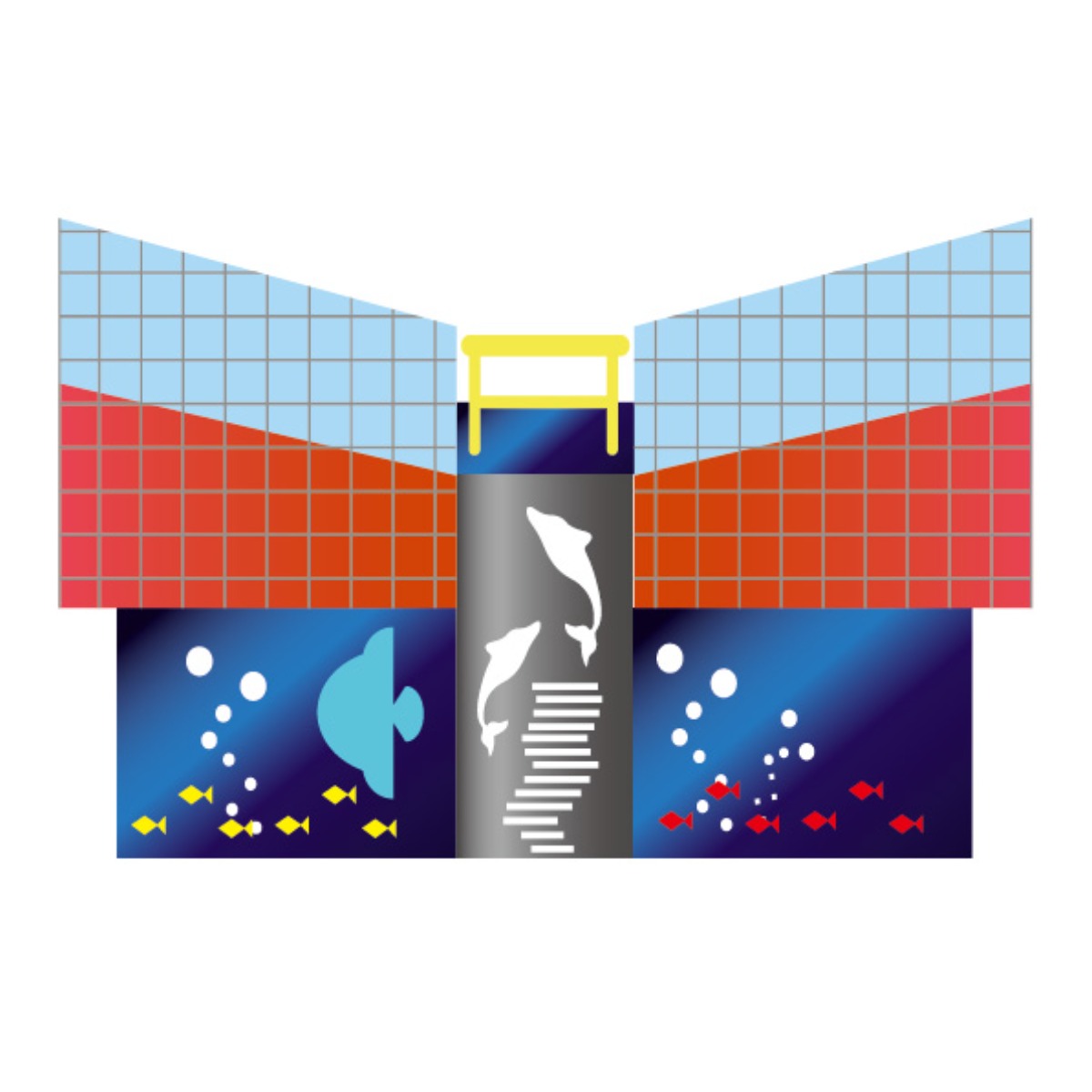 外観にはお祝いのくす玉をイメージした丸いイラストがあり、その中には海遊館の生きものたちがたくさん描かれていた。