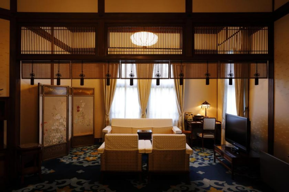 館内随所の調度品が明治の時を思い起こさせ、その雰囲気はまるで美術館に泊まるよう。