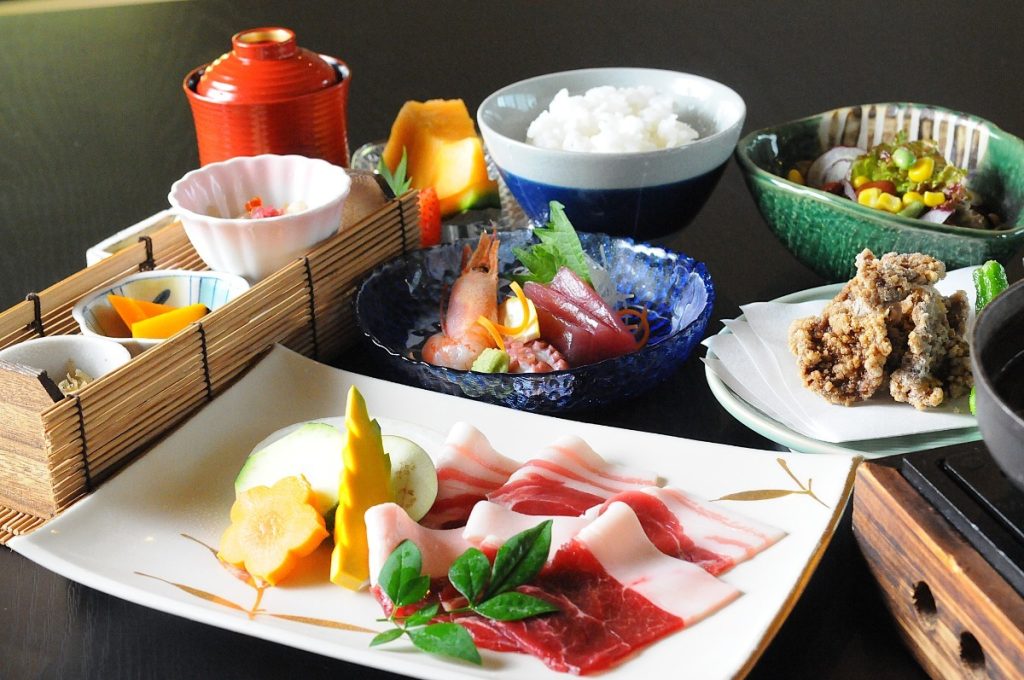 2.新鮮なアマゴ料理や臭みがなく女性にも人気の天然ボタン鍋など自然の恵みたっぷりのお食事。